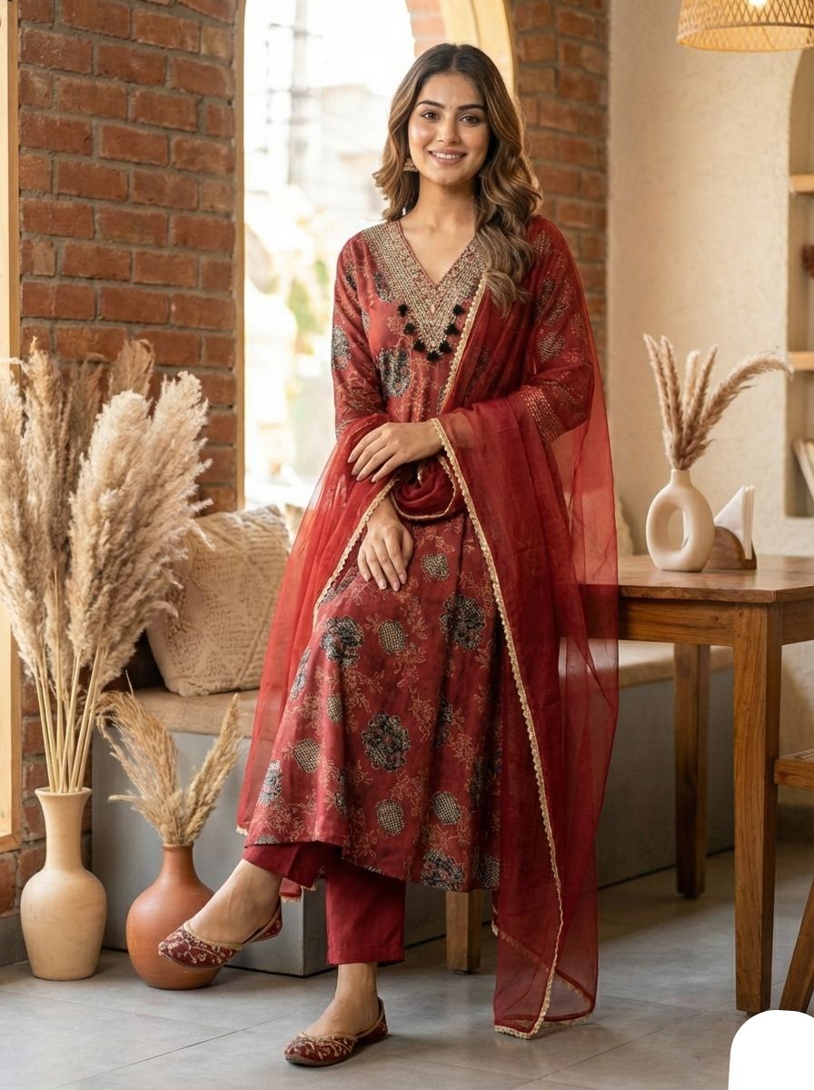 Vastrhouse Embroidered Kurta, Trouser/Pant & Dupatta Set